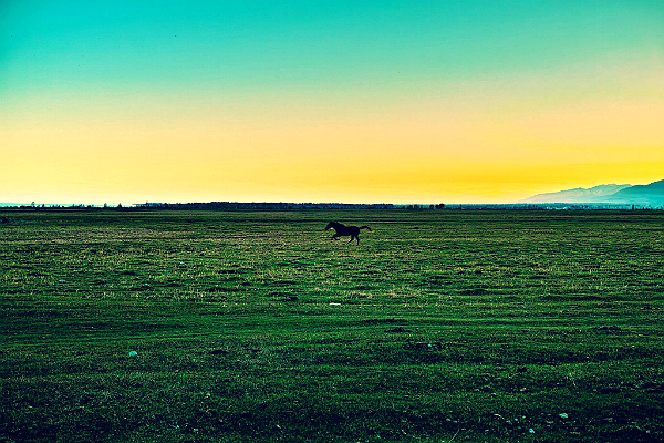 When I was heading home after the sunset, I heard frenzied neighing behind me suddenly.