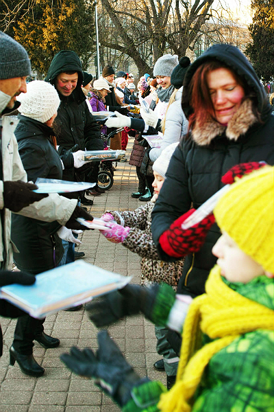 We handed thousands of books in -10 °C.