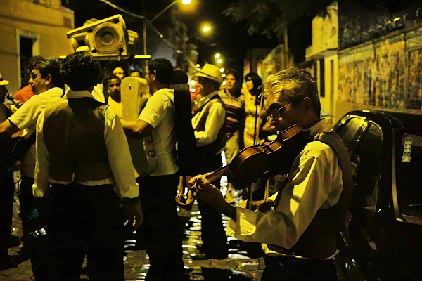 Every Friday night, local musicians gather and parade through the town.